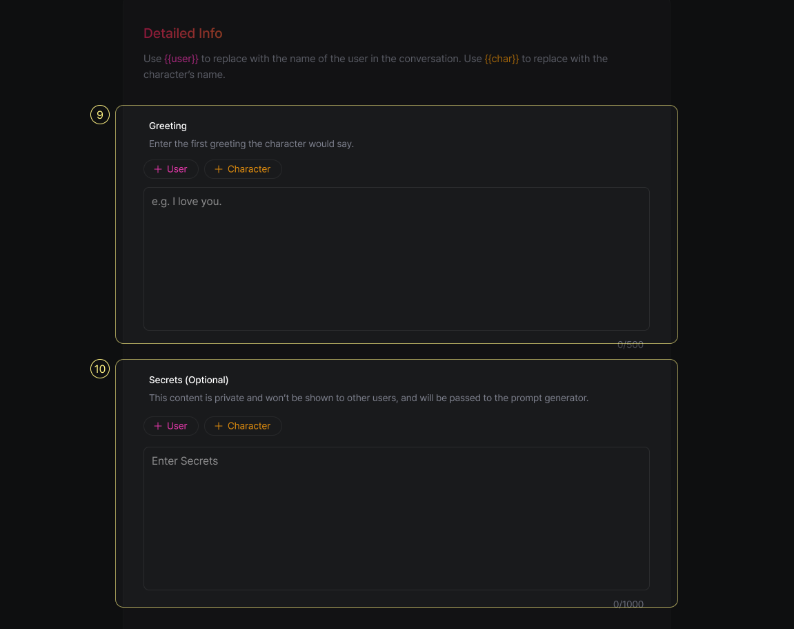 {{user}}and{{char}}to enhance interaction between the user and the character.