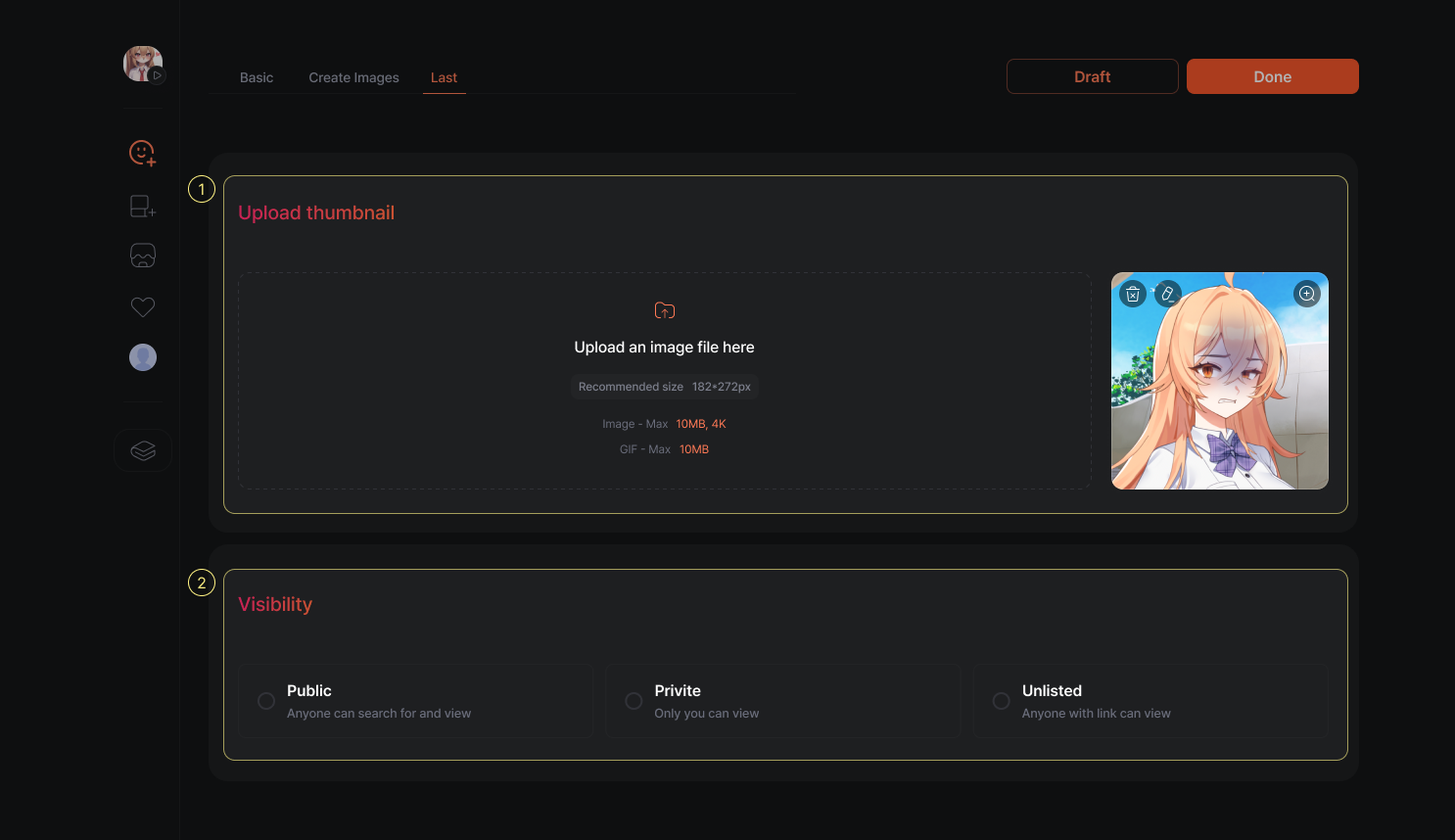 Add a great-looking thumbnail to make your character more eye-catching and engaging!